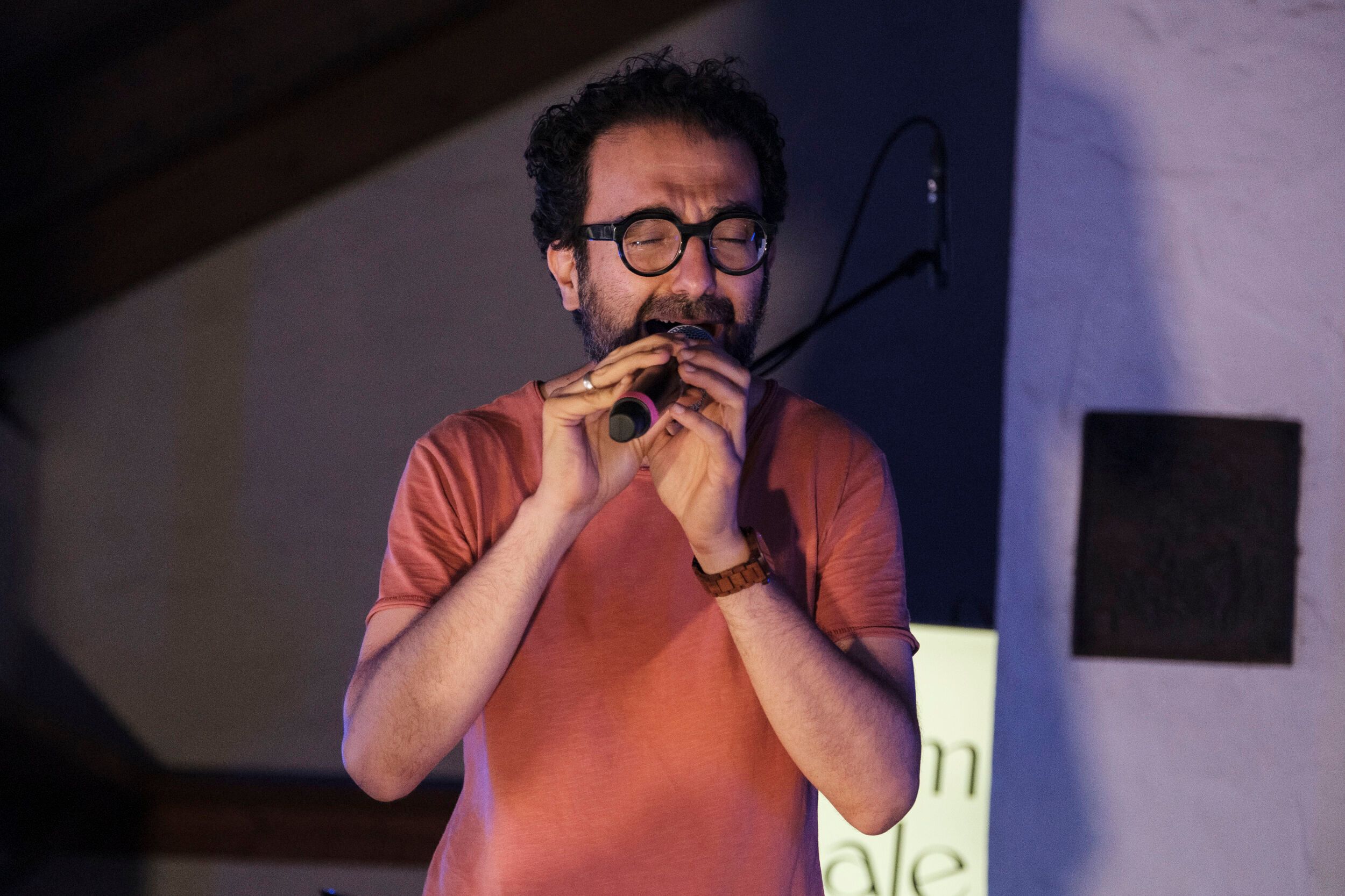 Zum Abschluss von The Festival 2025 lud der Monheimer Musiker Rabih Lahoud Künstler:innen aus dem line up des Festivals zu spontanen musikalischen Begegnungen in die Altstadtkirche ein. Auch wenn die Improvisation dabei naturgemäß im Vordergrund stand, deutet der Titel „Colors Of Unison“, den Lahoud für die Konzerte gewählt hat, auf eine bestimmte Einstellung zur Musik hin: Hier ging es nicht um virtuoses Geplänkel, sondern um die Konzentration auf Klang und musikalische Substanz. Gleichzeitig spielte die Auseinandersetzung mit dem besonderen (Klang)raum der Altstadtkirche eine wichtige Rolle. Zusammen mit Signature Artists Peni Candra Rini animierte der Sänger das begeisterte Publikum zum Mitsingen und es entstand eine unvergessliche Atmosphäre.