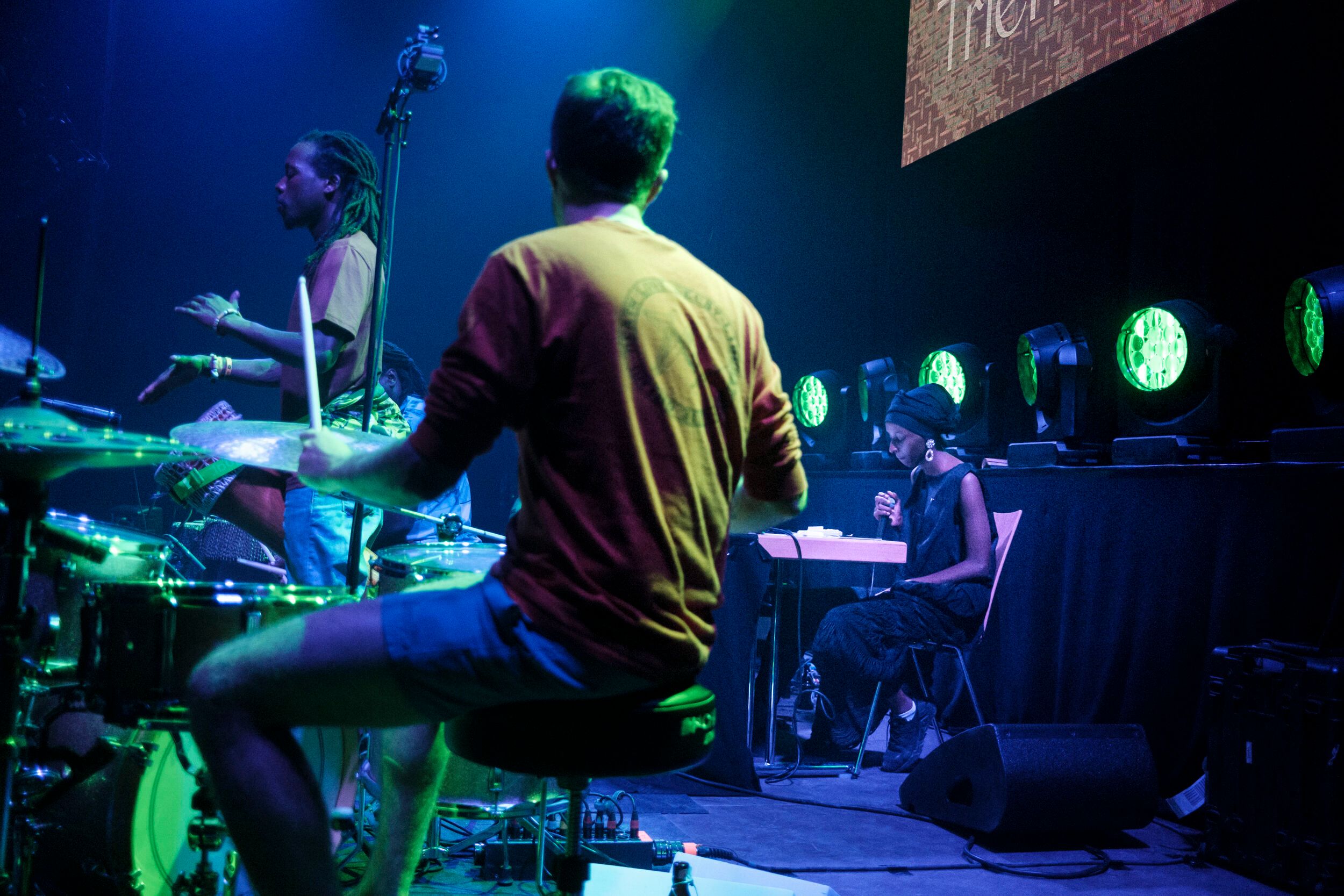 Aus dem Archiv der Monheim Triennale präsentieren wir einen Auszug aus Hibo Elmis Signature Projekt für The Festival 2022: Hibo Elmi aka Hibotep brachte die Band Nihiloxica mit, die wie sie eng mit dem Nyege Nyege Festival in Kampala verbunden ist. Zusammen übersetzten sie die alte, sehr kraftvolle Bugandan Trommeltradition Ugandas auf dem zeitgenössischen Dancefloor und fusionierten sie mit deepen Techno.