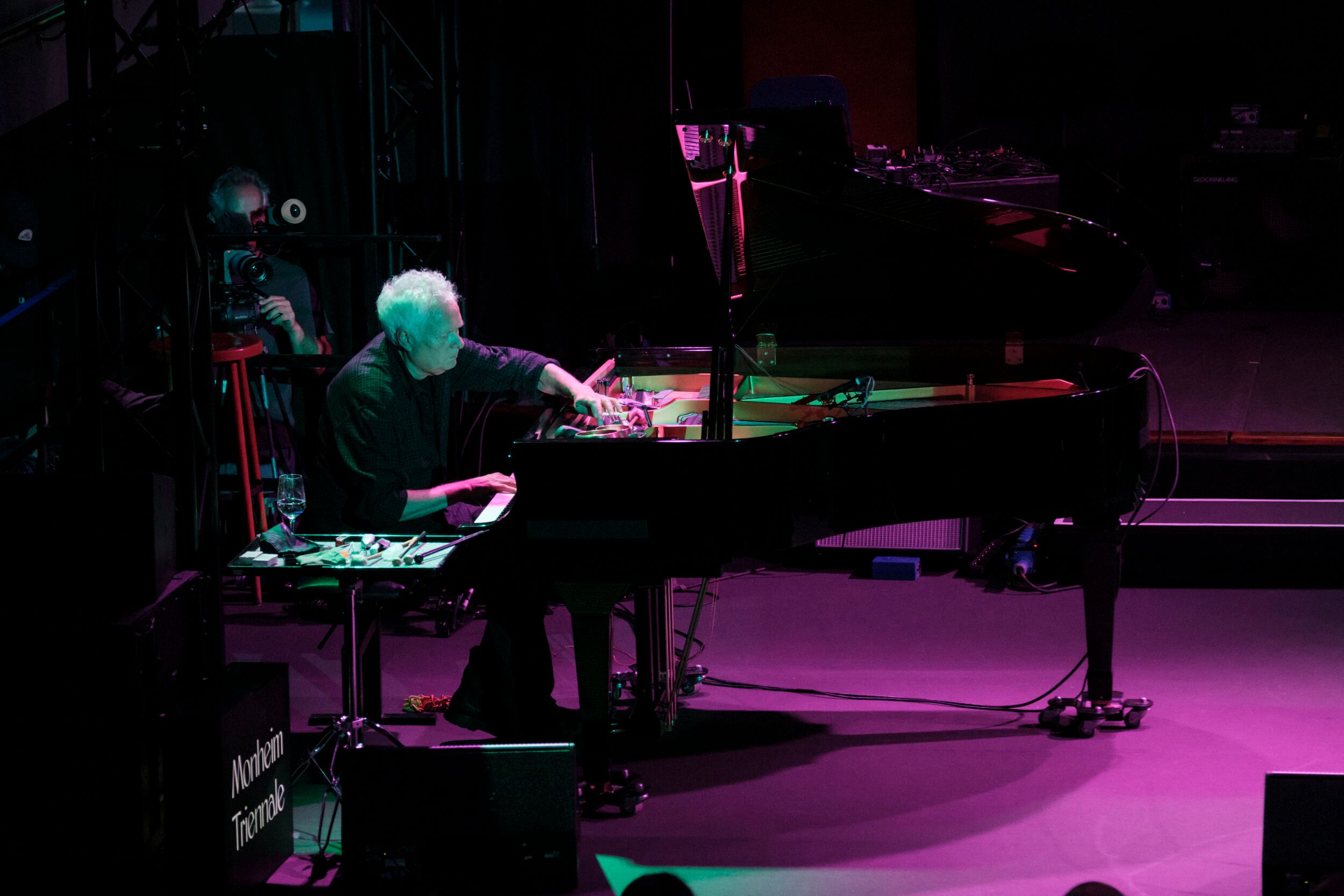 „Mayfield ist der Name eines alten Bahnhofs-Depots in Manchester, in dem wir diese Performance geprobt und aufgeführt haben. Inzwischen ein hipper Hotspot für die City war das 2018 noch eine kalte, nasse und nicht nur durch Tauben total verdreckte Halle mit langem Nachhall – was alles großen Einfluss auf die Ästhetik der Musik hatte, die dort entstanden ist. Bis auf den sizilianischen Saxophonisten Gianni Gebbia, den ich seit den 90ern kenne und Willi Bopp, mit dem ich als Sounddesigner seit 1989 zusammenarbeite, habe ich die Musiker und Musikerinnen von The Mayfield für diese Performance erst gesucht und gefunden: Camille Emaille, eine phantastische, unglaublich differenziert improvisierende Schlagzeugerin und Perkussionistin; trotz oder gerade wegen ihrer klassischen Ausbildung, von der sie sich entfernt hat.