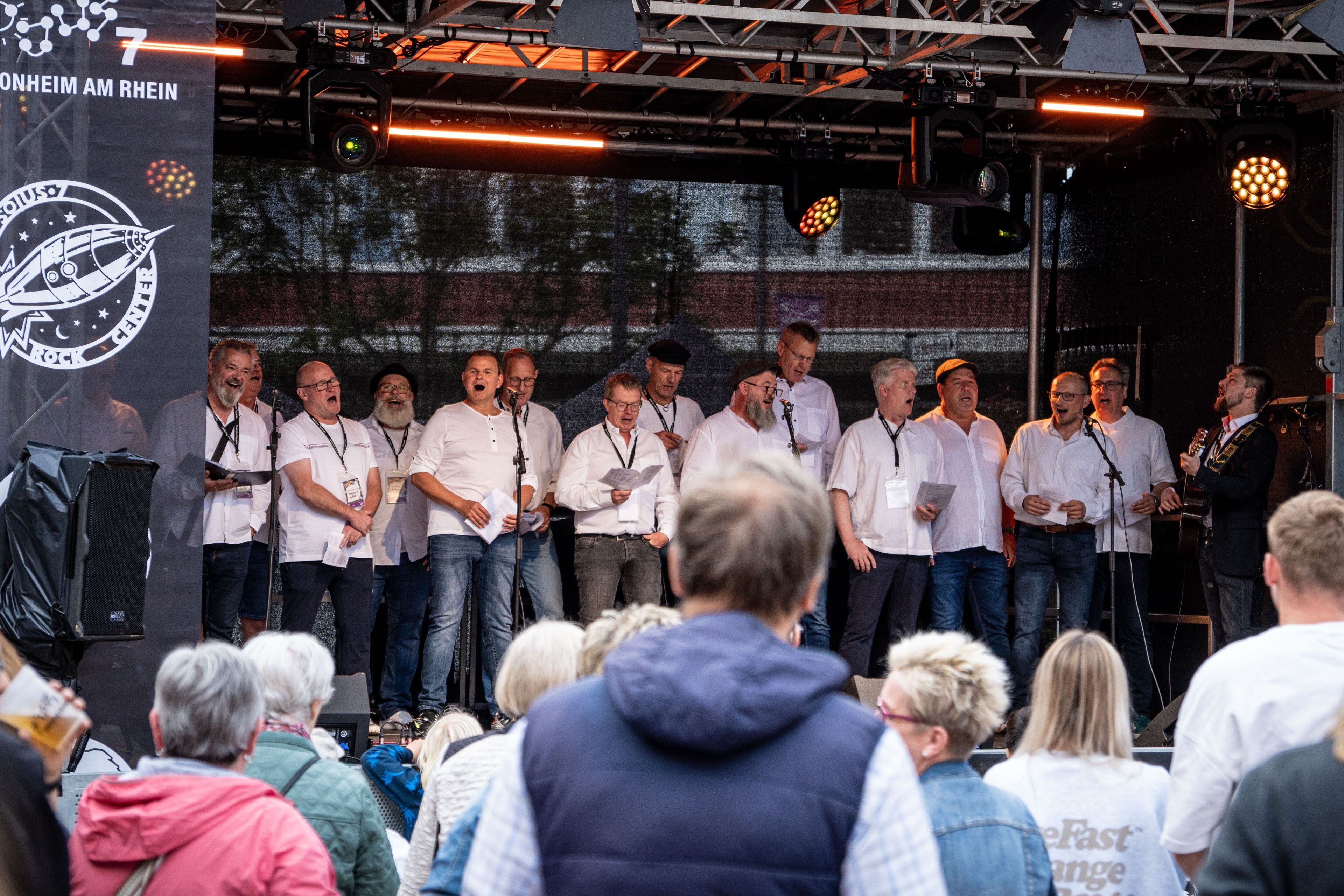 The second part of the concert was performed by the GANS Schräg choir, which is part of the Monheim music school. Originally started as a ‘shanty choir’, GANS Schräg now has a varied repertoire and has performed at the Baumberg Christmas market as well as on the Sojus 7 boat tour.